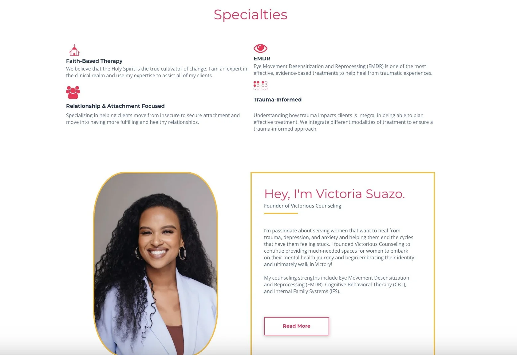 The founder of Victorious Counseling was preparing to launch her private practice and needed help finding the right words to connect with her ideal clients. She felt overwhelmed by the pressure to sound both professional and approachable—and wanted website copy that would reflect her warmth and expertise without relying on clinical jargon that might distance or confuse potential clients.