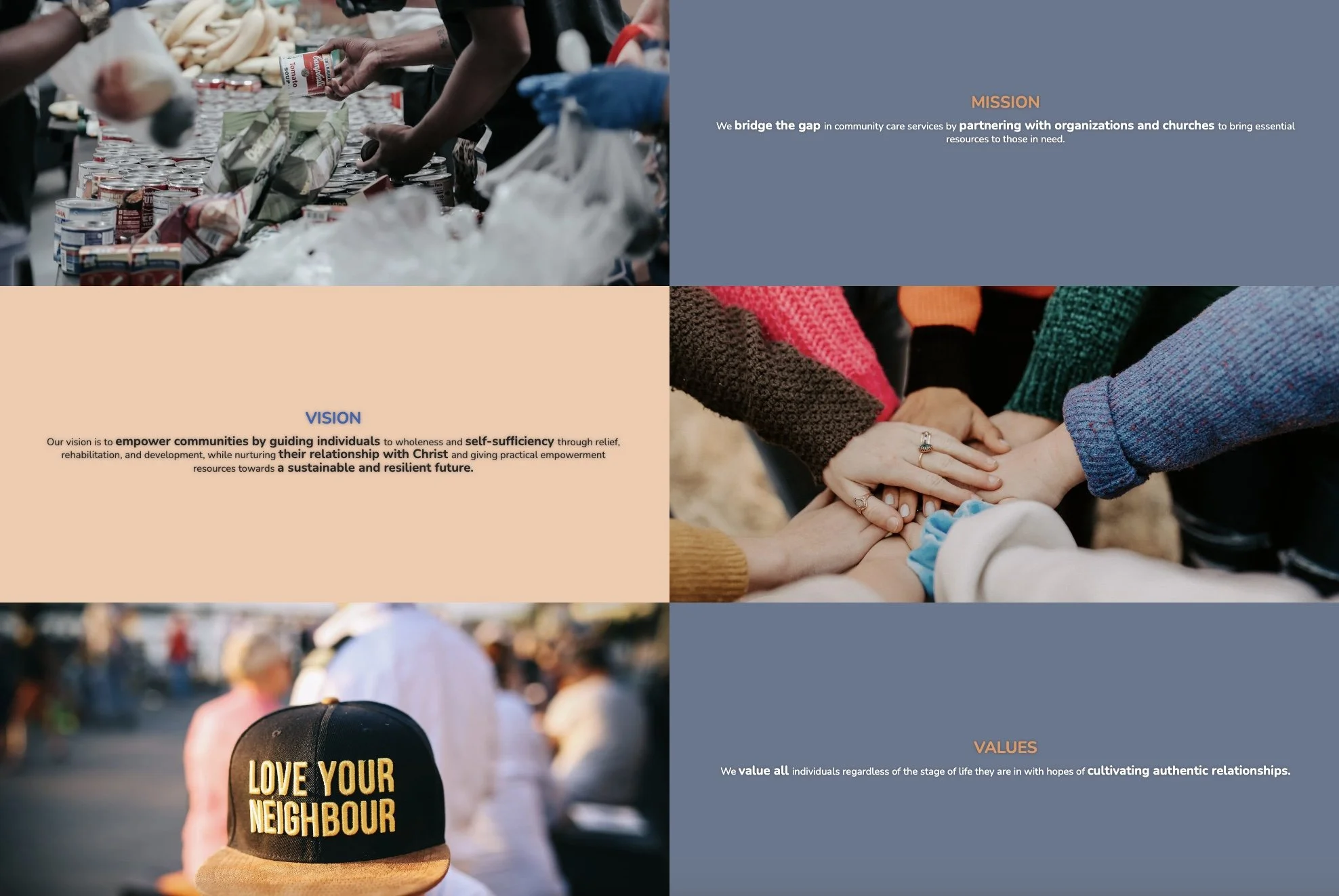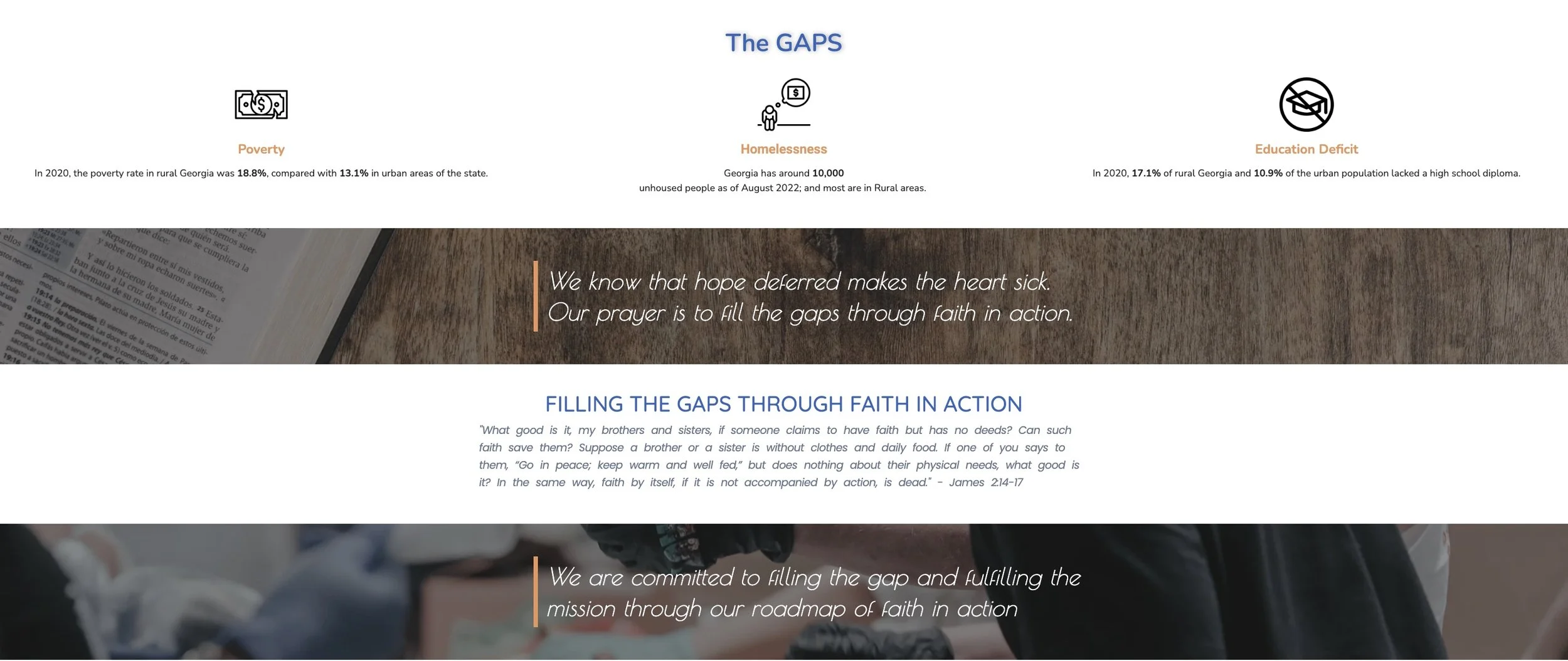 Landing page copy that clearly outlined the vision, giving options, and impact areas